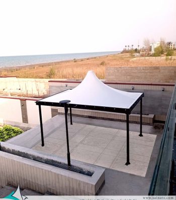 این آلاچیق نوعی سازه چادری است. که از پارچه های کششی مقاوم در برابر اشعه UV و شرایط نامساعد جوی تهیه شده است. این سازه از دوام بالایی برخوردار است. به راحتی تمیز و شسته می شود. و به دلیل سوار شدن بر پروفیل های آلومینیومی و زیرسازی مناسب در مقابل باد های شدید نیز مقاومت خوبی دارند.یکی از مهم ترین ویژگی این آلاچیق ها امکان طراحی و سفارشی سازی نامحدود است. به طوری که سازه کاملا با توجه به سلیقه شما طراحی شده. و می تواند به عنوان سازه ای دکراتیو در فضای باز شما استفاده شود.